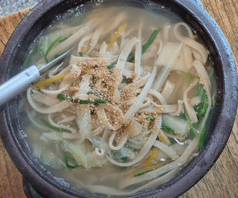 개운한 칼국수 국물과 더불어 글루텐 함량이 적어 소화에도 좋고 맛도 부드러운 우리 밀 칼국수 면