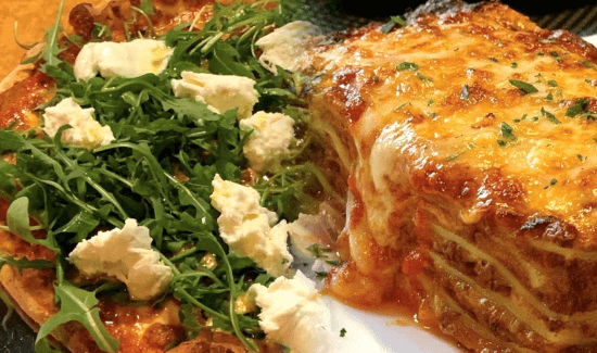 간 고기와 토마토 소스, 그리고 마지막에 들어가는 비법 소스는 집안의 100년 역사를 간직한 비법으로 만든 유럽 전통 음식 라자냐와 피자