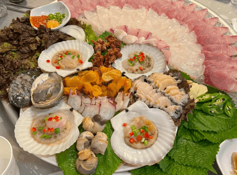 삼척의 바다를 통째로 담은 듯한 숙성회 세트와 생전복과 각종 신선한 해산물이 가득 들어간 해물탕을 초월한 해물탕라면