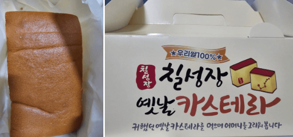 대구칠성시장 카스테라는 밀가루가 아닌 순우리쌀 100%로 빚어 맛과 영양이 풍부한 건강식품이며 한끼식사 대용으로도 가능하며 특히 선물용으로 인기가 많다고 합니다.