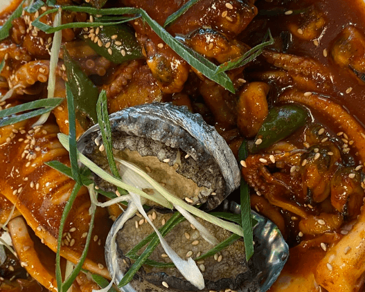 코다리해물찜은 살이 실하고 쫄깃하면서도 부드러운 코다리와 통오징어 전복 낙지 홍합 등 다양한 해산물이 푸짐하게 들어 있어 신선한 재료와 푸짐한 양 맛은 물론 가성비갑의 메뉴