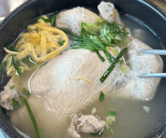 삼계탕은 정말 영계백숙 삼계탕이어서 야들야들하고 부드러운 어린닭이 통째로 들어있고 통마늘, 밤, 부추, 지단도 고명으로 예쁘게 올라가있으며 국물도 너무 진하고 맛있는데다 찹쌀죽까지 즐길 수 있는 최고의 가성비 맛집
