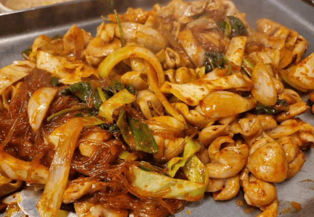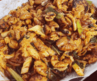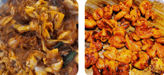 매콤한 소스에 곱창과 당면 신선한 야채로 볶아낸 야채곱창 막창양념구이는 곱창과 다른 막창의 식감을 살린맛으로 매콤한 소스로 볶아내 쫄깃한 식감과의 조화가 최고
