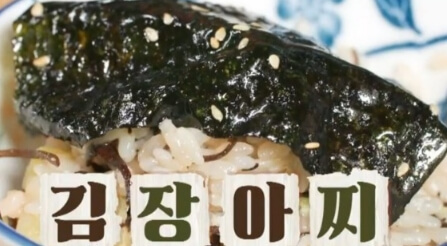 최강 밥반찬인 김장아찌는 한 장 하 장 김을 깔면서 만들어낸 고생스러운 반찬인데요. 김 특유의 고소함과 장아찌의 짭조름함이 톳 밥과 어우러지면서 다른 반찬이 필요없을 정도로 밥도둑이라고 합니다.