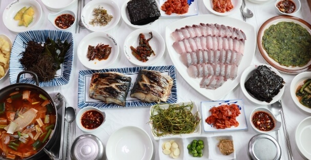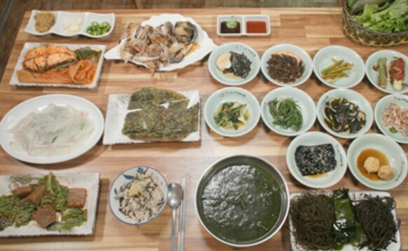 톳, 꼬시래기, 다시마 등의 다양한 해조류와 비법 매생이국 그리고 해남 고구마와 직접 캔 톳을 넣은 고구마 톳밥 김장아찌를 곁들이면 밥도둑이 따로 없다고 합니다.