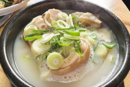 우족꼬리곰탕은 우족의 쫄깃한 살점과 꼬리뼈가 통째로 들어있는데 해남 황칠나무로 육수를 냈기 때문에 전혀 느끼하지않고 담백하면서 고소한 소고기 탕의 맛을 제대로 느낄 수 있다고 합니다.