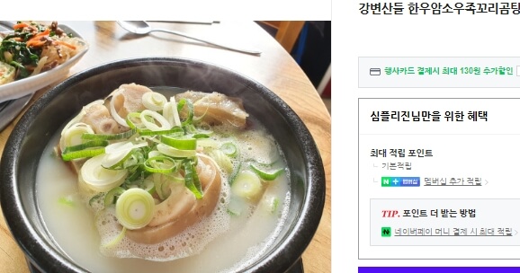 해남 한우 우족꼬리곰탕 돼지찌개 주문정보