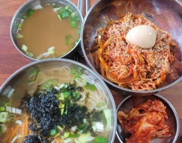 재료를 아끼지 않고 정성들여 만든 자극적이지 않으면서 매콤새콤한 맛이 제대로 살아있는 비빔국수와 정성들인 육수의 맛이 제대로 느껴지는 멸치국수