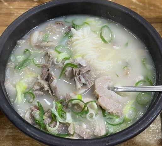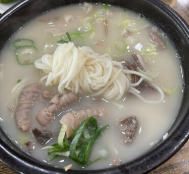 돼지 사골과 좋은 재료를 오랜시간 고아 보약같은 국물로 햐얗고 뽀얀 국물이 인상적으로 수십년의 전통을 이어온 맛집으로 화학조미료를 사용하지 않고 순수하게 육수를 만든다고합니다.