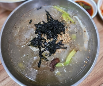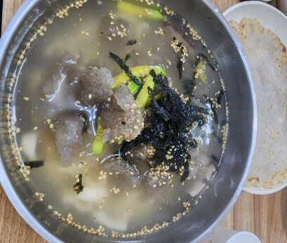 한 입에 쏙 쫄깃한 식감을 자랑하는 감자옹심이와 국물은 멸치와 채수로 맛을 내서 맑고 옹심이는 순도 100% 감자 맛을 내며 시장 노포의 누룽지 감자전의 고소하고 구수한 맛이 일품인 곳