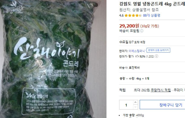 냉동 곤드레와 건곤드레로 판매중인데 부드러운 식감과 담백한 맛을 지니고 있는 곤드레는 곤드레나물밥, 나물볶음, 조림등 다양한 조리로 맛있게 드실 수 있는 건강나물로 소화흡수도 잘되어 어린이나 노인들에게도 좋습니다