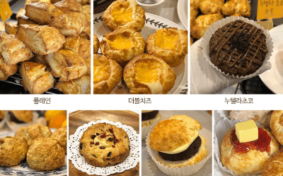 플레인스콘 - 3.500원 더블치즈스콘 - 4.500원 우유크림스콘 - 5.000원