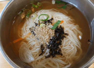 직접 제면한 면이기 때문에 그 쫄깃함이 남다르고 밴댕이 육수가 워낙 진하기 때문에 중면에도 맛이 잘 스며들어 깊은맛이 더해진다고하는데요.