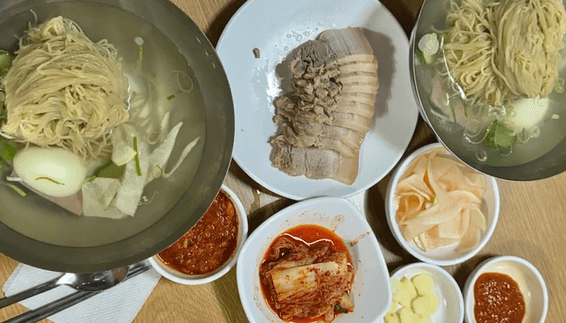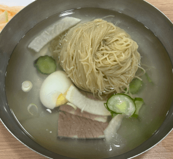 이곳 평양냉면의 육수는 워낙 맑아서 마치 차가운 콩나물국을 먹는 것과 같은 시원함을 느낄 수 있다고 하는데 그 가운데서 깊이 있게 느껴지는 육향이 일품이라고 합니다.
