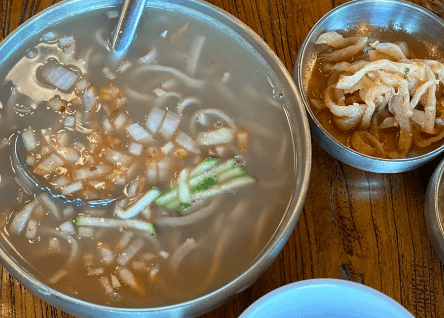 우리밀칼국수의 두툼한 면은 일반적으로 먹어왔던 칼국수면과는 확실이 다른데 씹을때 밀의 거친 질감이 느껴지는데 그 투박한 느낌이 우리밀칼국수의 매력이라고 합니다.