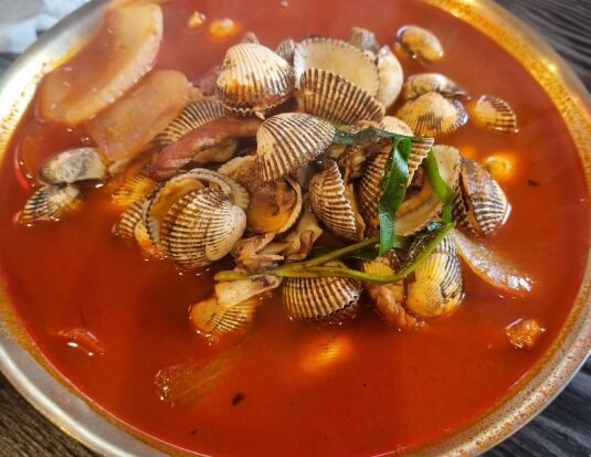 꼬막이 수북히 들어가다보니 깔끔한맛도 들고 불향도 엄청 좋으며 면이나 밥과 같이 먹어도 헤치지 않는 진한맛으로 얼큰하면서도 불향이 나서 감칠맛도 끝내준다고합니다.