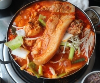 깊은맛에 감동을 주는 삼겹살과 묵은지를 잘 싸서 밥과 함께 먹으며 꿀맛으로 깊은 국물맛에 감동하며 속까지 양념 잘베어 있는 닭볶음탕에 닭도 먹고 삼겹살도 먹고 거기다 묵은지까지 묵은지삼합의 매력에 빠지게 된다고 합니다.