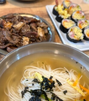 잔치국수도 멸치를 우려낸 국물이 끝내주네요. 간도 적당하니 연탄구이랑 환상의 궁합이라고 합니다. 김밥 한 줄에 3,000원인데요. 일반 김밥이랑 조금 다른 건 내용물에 계란이 예쁘게 듬뿍 들어가 있으며 계란의 노란색이 김밥 맛을 더욱 맛있게 해주기에 눈으로 보기에도 너무 예쁜 김밥이라고 합니다.