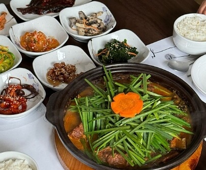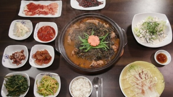 산나물등갈비찜은 기름기 없는 고기라서 자칫 퍽퍽하게 느껴지기도 하지만 산나물과 함께 좀 더 끓이면 부드러운 고기의 맛을 느낄 수 있는데 반찬으로 먹던 나물을 갈비찜과 함께 끓여 만들어낸 이색 보양식이라고 합니다.