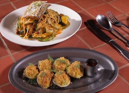 갈치파스타와 구운 백합조개는 새로운 맛을 찾고 있는 사람에게 꼭 한번 도전해 볼만한 메뉴로 백합조개구이는 블러디메리 소스를 끼얹어 먹으면 더욱 특별한 맛을 느낄 수 있는데요. 소스를 가득 끼얹어도 조개 본연의 맛은 유지하면서 풍미를 더욱 끌어올려 준다고 합니다.