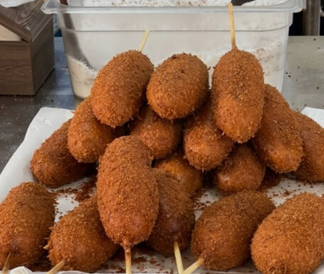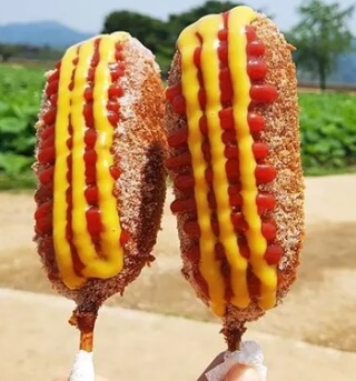 핫도그안에 소시지와 밀가루 반죽에 연잎이 들어가기때문에 느끼하지않고 담백하며 고소한데다 두겹으로 튀겨낸 빵의 겉은 바삭바삭하며 안은 카스테라처럼 폭신하고 촉촉한 육즙의 소시지로 마성의 중독성의 핫도그로 유명한데 소시지는 매운맛과 순한맛의 두 종류로 2tv저녁 생생정보 믿고떠나는 스타의 고향 양평 두물머리 핫도그 택배주문은 하단의 홈페이지를 통해 가능합니다.