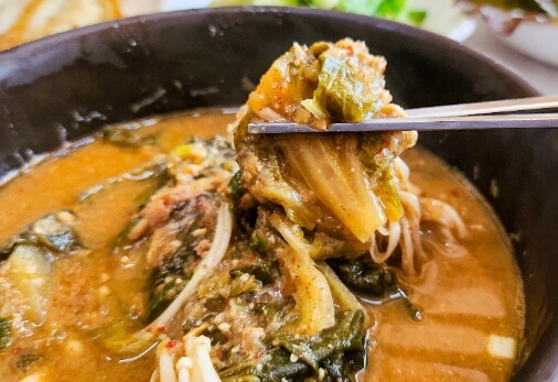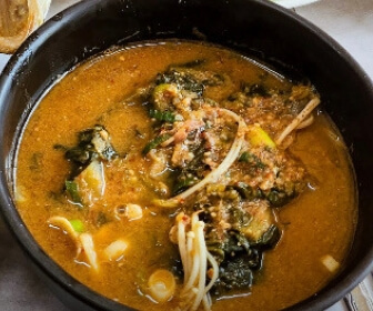 남해에서 깨끗한 유기물을 먹고 자란 100% 자연산 짱뚱어를 통째로 넣고 시래기와 함께 푹 고아 흙내없이 깔끔하고 구수한 맛의 짱뚱어탕으로 된장과 간마늘 고춧가루 등을 넣어 깊은 육수맛과 무청과 우거지와 오랜시간을 끓여 더욱 깊은맛이 난다고 합니다.