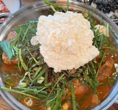 감자탕의 고기 살도많고 부드럽고 콩비지가들어있어 국물맛부터 남다른 감자탕으로 양도 많고 부추도 많이 들어 있어 향긋하며 국물도 해장 하기에 딱 좋고 뼈에 살도 많아서 들깨처럼 고소하고 걸쭉해 감자탕 맛이 일품입니다.
