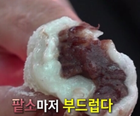 달인은 직접 농사지은 100% 다산 찹쌀만을 이용하여 찹쌀반죽을 삶아 떡을 만들어 떡이 연하고 쉽게 굳지 않아 씹을수록 부드럽고 촉촉한 식감과 부담없는 단맛으로 냉동했다가 살짝 차갑게 해서 먹으면 더 쫄깃하고 맛있다고 합니다.