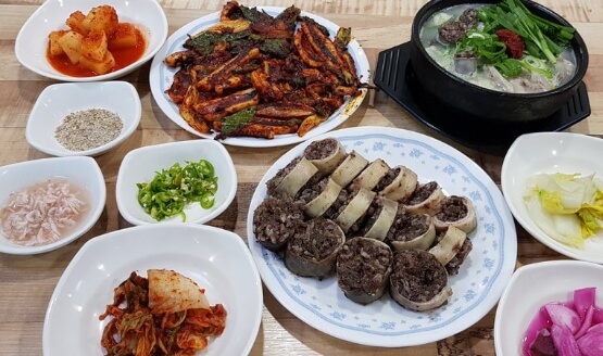 사골뼈로만 진하게 우려 사용하는 순대국밥은 국물도 뽀얗고 진하고 깔끔한 맛을 자랑하는데 순대는 도톰하고 쫄깃한 막창을 사용하며 10여 가지의 영양많고 신선한 재료를 사용해 맛이 깔끔한것이 특징이라고 합니다.