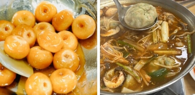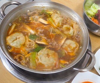 경동시장 수제만두전골은 요리 경력이 90년대부터 시작하는 대가 권영수 요리장님이 직접 만드는 수제만두전골로 커다란 수제만두가 여러개 들어있고 각종 버섯, 얇게 썰린 고기, 칼국수 면사리가지 한번에 들어있어서 푸짐하게 먹을 수 있으며 매콤한 국물의 감칠맛이 일품이라고 합니다.