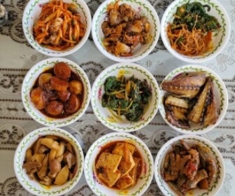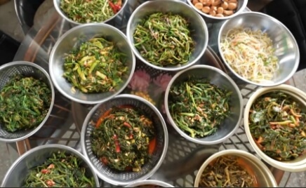 방풍,잔대,엄나무순,눈개승마(능개승마),미나리,비름,숙주,씀바귀,달래순, 시금치, 머위,오이무침,명태껍질 무침,메추리알 장조림,멸치조림,코다리찜과 아욱 된장국 등 매일 바뀌는 중에서도 특히 다양한 나물반찬이 맛있다고하는데요.