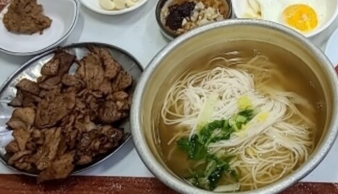 진한 멸치 국수에 12가지 재료가 들어가며 각종 채소로 깊은 맛을 우려내 국물이 너무 시원하고 속이 풀리는 기분이 드는 가성비 최고의 국숫집이라고합니다. 고소하고 부드러운 연탄불 맛 불고기도 인기라고 합니다.