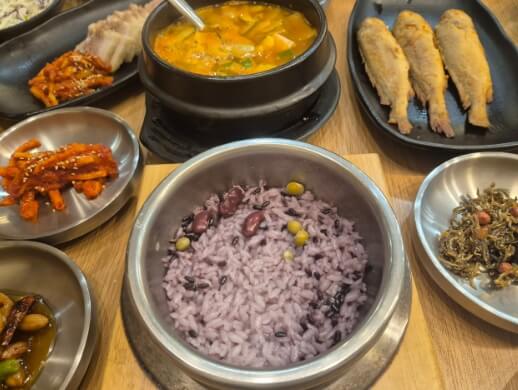 된장찌개, 솥밥, 다양한 밑반찬 소박한 음식들이지만 잔칫상처럼 푸짐하고 다채롭게 나와서 대접받는 기분이 들고 맛있고 가격도 착하고 만족도가 매우 높은 18첩 반상 맛집이라고합니다.