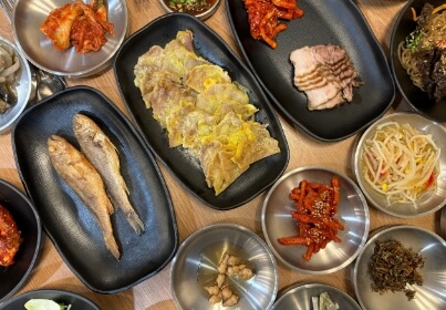 삼겹살 보쌈부터 제철 맞아 속이 꽉 찬 양념 꽃게장, 고소한 육전, 오동통한 조기구이는 물론 불맛까지 가득 입힌 각종 나물 반찬까지 게다가 돌솥밥에 된장찌개까지 가성비 좋은 한정식집이라고하는데요.