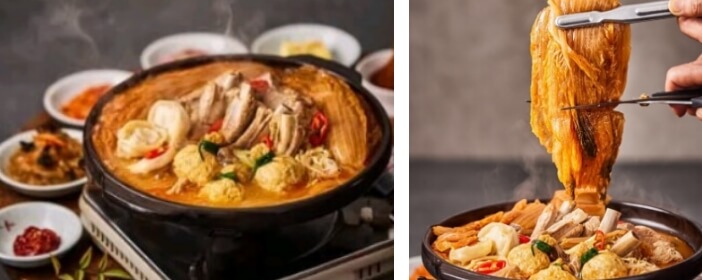 씻어낸 묵은지를 비법 양념과 직접 만든 돼지기름을 넣어 따로 또 삶아 김치와 국물에서 느껴지는 부담스럽지 않은 묵은지 특유의 시큼 새콤하면서도 구수한 맛과 향이 살아 있으며 구수한 감칠맛으로 마성의 중독성을 주는 묵은지찜이라고 합니다.