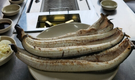 강화도 갯벌장어는 자연산에비해 상대적으로 저렴하면서도 자연산과 같은 영양이 풍부하고 쫀득한 살과 비린내도 없는 것이 특징으로 워낙 식감이 좋기 때문에 양념을 해서 구울 필요도 없고 천일염으로 간을 해서 구워내면 장어 본연의 풍미를 제대로 느낄 수 있다고 합니다.