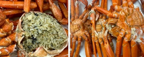워낙 살이 가득차 있어 먹다보면 살을 잔뜩 발라내고 따로 홍게라면을 주문해 게살을 더 얹어저 먹거나 게딱지볶음밥에 살을 가득 얹어서 먹는 호화로운 게 요리도 즐길 수 있는데요. 내장 또한 제법 실하기 때문에 2천원의 추가요금으로 가능한 게딱지 볶음밥은 필수입니다.