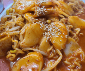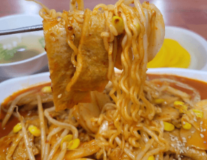 살짝 매콤하면서 달달한 콩나물 떡볶이는 라면의 식감과 콩나물의 식감이 서로 상호보완해주는 맛이 매우 인상적인데다가 거기에 큼직큼직 가득 들어간 오뎅과 가래떡을 보면 달인의 내공과 넉넉한 인심까지 더해진것을 알수있다고합니다.