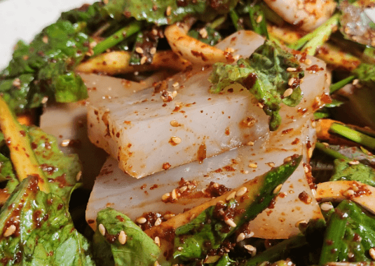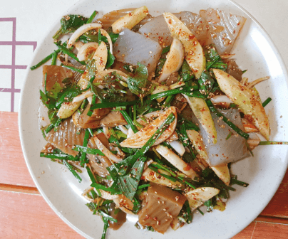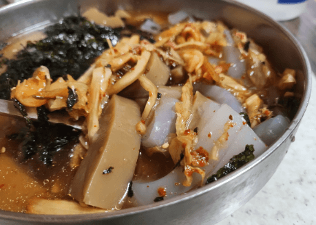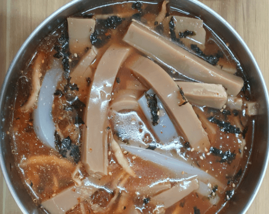 묵은 도토리묵과 청포묵 두 가지가 같이 나오는데 투박하게 썰려 있는 묵으로 시골 정취 가득한 묵 한사발의 맛. 시판하는 냉면육수도 아니고, 직접 만드신 육수에 신김치로 신맛을 내고 들기름 둘러 만든 할머니의 맛. 순하고 무던한, 말 그대로의 수더분한 묵맛을 느낄 수 있다고 합니다.