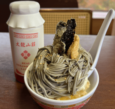 들기름 막국수 아이스크림은 바닐라 아이스크림이 밑에 들어있고 막국수 모양은 달달한 아이스크림 앙금 역할을 한다고 하는데 그 위에 들기름을 가득 들러주는데 약간의 호불호는 있을 수 있지만 달달한 아이스크림과 고소한 들기름의 조화는 좀처럼 맛보기 힘든 독특하고 재미있는 메뉴라고 합니다