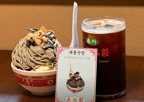 춘천 들기름 막국수 아이스크림집은 한·중·일 3국의 특색을 담은 인테리어부터 들기름과 아이스크림의 독특한 조합으로 만들어낸 대표 메뉴인 들기름 막국수 아이스크림을 맛볼 수 있는 강렬한 인상의 범상치 않은 카페입니다.