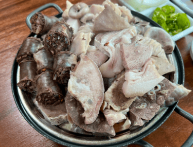 모듬안주는 토종순대, 간, 허파, 오소리감투, 머릿고기, 염통, 애기보까지 정말 여러 부위들이 나와서 매니아들도 만족할만한 구성인데요. 애기보 또한 쫄깃쫄깃하면서 의외로 담백하며 누린내도 잡내도 없이 깔끔하고 촉촉함이 가득해서 거의 모든 부위를 맛있게 먹을 수 있다고 합니다.