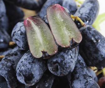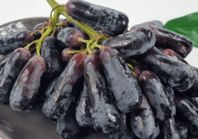 독특한 생김새로 눈길을 사로잡는 블랙 사파이어 포도는 길쭉하고 통통한 알맹이 속 달콤한 과즙을 머금고 있으며 아삭아삭한 과육의 식감이 일품으로 생과 그대로 먹어도 좋고 좋고, 주스, 에이드 등으로 활용해도 좋다고 합니다.명