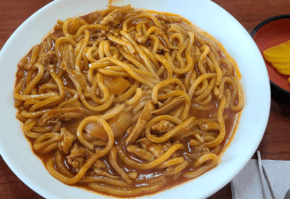 흔한 닭갈비가 아닌 달인의 비법 양념에 우동을 볶고 거기에 닭고기를 넣은 닭갈비 우동으로 24년째 독특한 맛을 이어가고 있는 달인 맛집의 면을 다 먹고 비벼 먹는 공기밥으로 마무리가 환상적이라고 합니다.