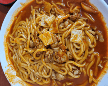 춘천닭갈비우동은 달인의 비법 양념에 탱글탱글 양념이 잘 배어든 우동 면발, 그리고 잡내 전혀 없이 부드러운 살만을 사용한 닭고기까지 독특하고 맛있는 닭갈비 우동인데요