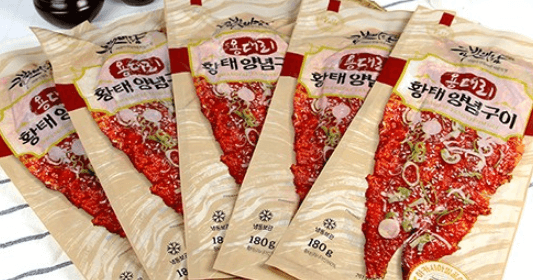 황태양념구이는 촉촉하면서도 입맛 당기는 매력으로 품질 좋은 황태만을 엄선하여 촉촉하고 부드러운 황태 속살에 사과, 배, 무, 양파 등 천연재료에 벌꿀을 첨가해 부드럽고 고소하게 만든 특별한 양념소스를 더해 만든다고합니다.