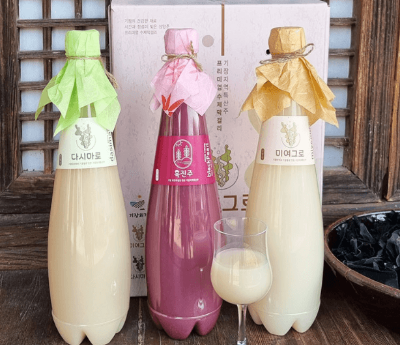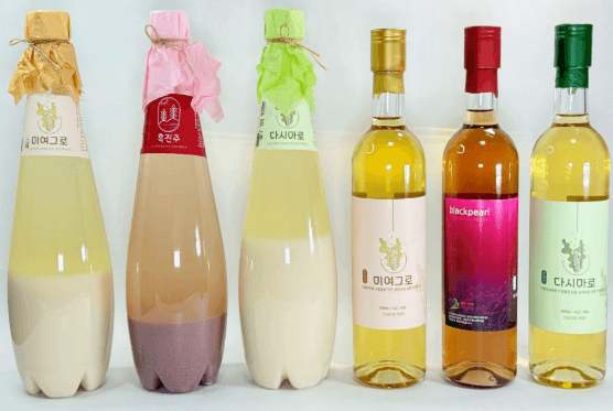기장 미역막걸리는 막걸리 발효과정에서 해조류의 짠맛을 제거하고 오랜기간의 발효와 숙석과정을 거친 기장 미역막걸리는 기장 지역 전통주로 이 막걸리는 수제 프리미엄 막걸리로, 오랜 숙성 기간을 거쳐야 비로소 완성되는 귀한 막걸리라고하는데요. 기장쌀과 미역으로 만든 미여그로, 흑진주는 기장 흑미로 만든 수제막걸리, 다시마로는 기장 다시마와 기장쌀로 만든 수제막걸리입니다. 모두 기장의 특산품으로 만든 술이에요.