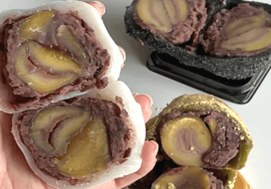 968회 생활의 달인 통밤 찹쌀떡 김원균 달인의 극강의 쫄깃함을 보여주는 찰쌉떡은 직접 조리한 통밤과 직접 쑤운 통팥앙금을 직접 반죽한 찹쌀 떢피 안에 가득 넣어서 만드는데 100% 국산 찹쌀로 쫄깃쫄깃한 떡피와 재료 본연의 맛이 살아 있는 통밤 찹쌀떡이라고 합니다. 흰찹쌀, 흑임자, 쑥 각각의 특유의 풍미와 통밤의 조화, 쫄깃함이 최상급인 생활의달인 통밤 찹쌀떡 아래에서 택배로 주문하세요