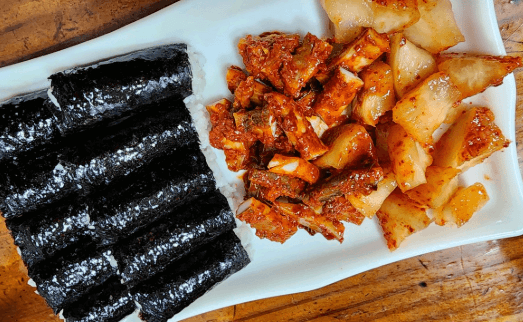 적당한 소금간과 고소한 김덕분에 그냥 밥만 먹어도 맛있는 달인의 충무김밥은 상큼한 무 석박지와 큼직하고 매콤한 오징어 무침 덕분에 충무김밥의 진정한 진가를 느낄 수 있다고합니다.