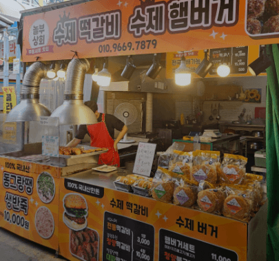 인천 부평시장에서 이미 유명한 수제떡갈비는 국내산 한돈으로 찰지게 뭉쳐 양념장에 뒤집어가며 구운 떡갈비로 육향은 물론 육즙과 달인만의 비법 양념으로 고소하고 감필맛이 일품이라고합니다.